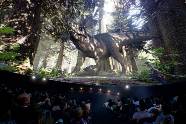 Redan när du kliver in i visualiseringsdomen är det tydligt att du ska få vara med om något utöver det vanliga. Projektionsytan på hela 443 kvadratmeter omsluter dig 360 grader runt om och 165 grader kant till kant. Domen är tiltad 27 grader framåt så du tittar nästintill rakt in i sfären. De sex projektorerna hanterar sex olika primära färger av laser och genererar tillsammans en bild med sammanlagd upplösning i 8K – en skarpare bild än det mänskliga ögat kan uppfatta. 3D-glasögonen är av den senaste tekniken, med unik fullspektrum färgteknologi som ger oerhört klara och färgrika bilder. Ljudsystemet består av tio högtalare och tre bashögtalare för ett ljud i världsklass.